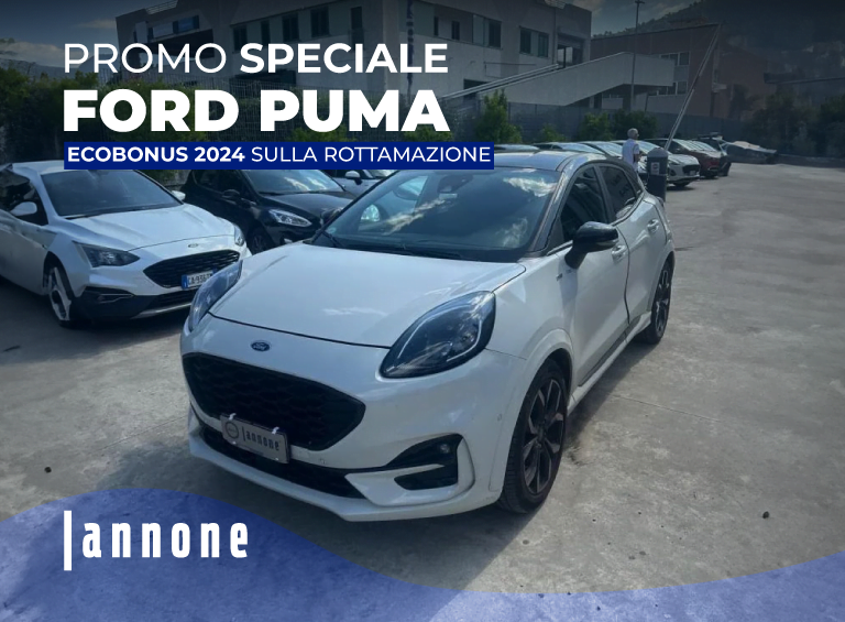 Fino al 31 Dicembre 2024, potrai guidare la tua nuova Ford PUMA scegliendo il tuo allestimento preferito dal parco auto Usato Certificato Iannone , a partire da un prezzo imperdibile €16.800 se rottami il tuo veicolo con ECOBONUS! (Dettagli)